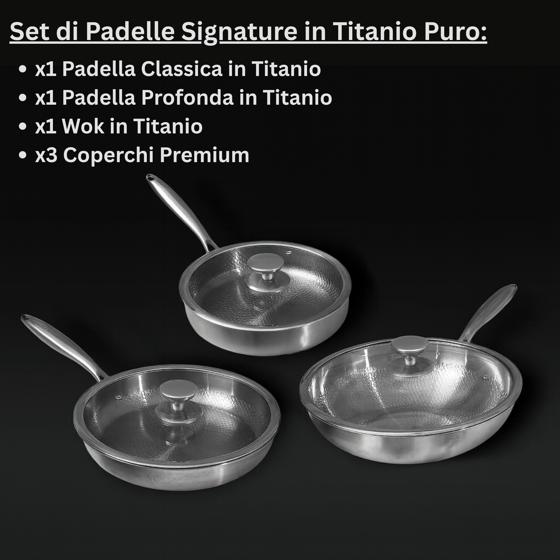 Ogni padella Titanio Puro unisce l’eleganza minimalista italiana all’ingegneria di alta precisione.