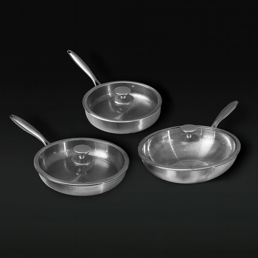 Il design martellato garantisce una distribuzione uniforme del calore.