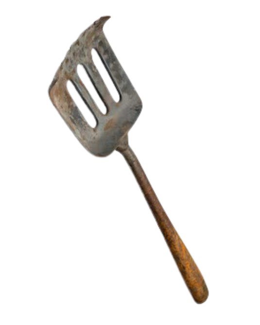 Cucchiaio forato (Strainer Spoon / Skimmer): lunghezza 31–33 cm, diametro 8–9 cm